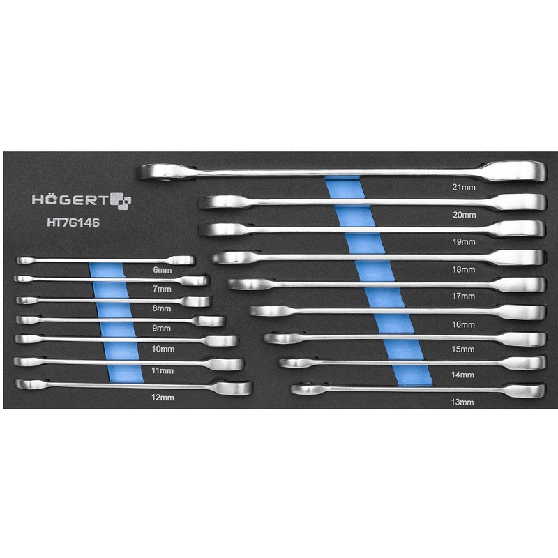 HOEGERT Набір ріжково-накидних ключів з трищіткою EVA 16шт. HT1R006-HT1R021 HOEGERT 16 (HT7G146)