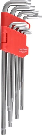 CARLIFE Набір ключів Г-подібних торцевих з отвором, довгі Cr-V, 9 шт. (T10-T50), Torx (WR2113)