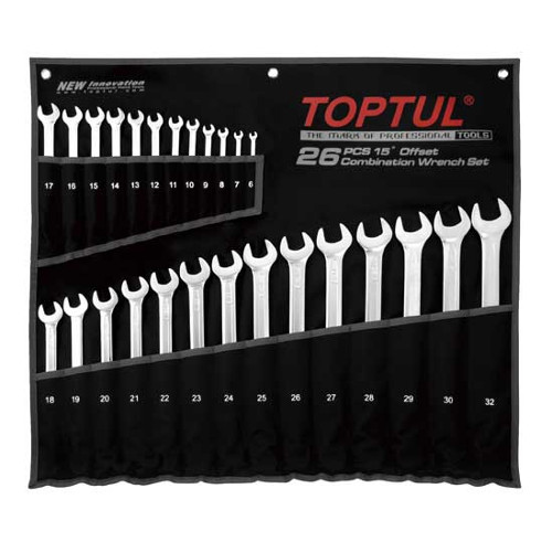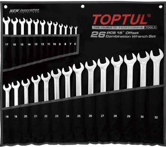 Набір ключів комбінованих 26 шт 6-32 мм TOPTUL подовжених GPAA2602 в чорному чохлі.
