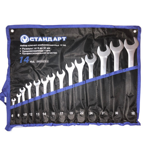 Набір ключів комбінованих 6-32 мм 14 шт. в чохлі СТАНДАРТ-NKK14STA-S (6,8,10,12-15,17,19,22,24,27,30,32)