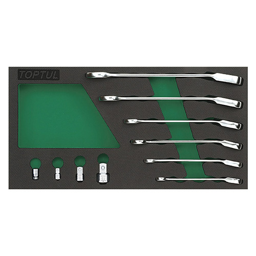 Набір ключів комбінованих із тріскачкою 8-19 мм + перехідники 10 од. (в ложементі, тип А) TOPTUL GVA1017