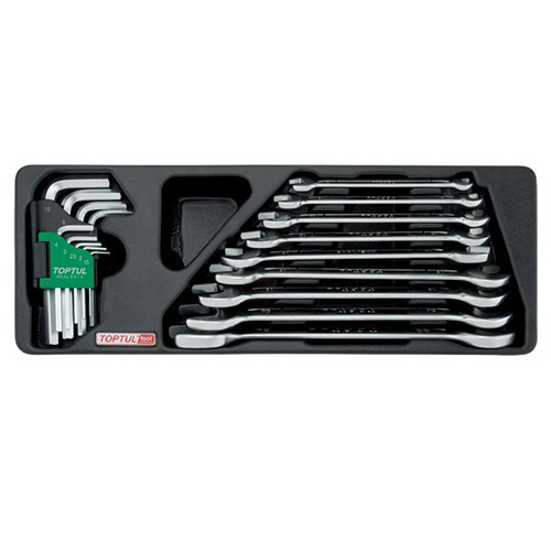 Всі набори інструментів TOPTUL високої якості в даний час розроблені з 2 взаємозамінними розмірами вкладишів (A і B), що дозволяє користувачам легко комбінувати і поєднувати найбільш підходящий і необхідний інструмент у кожному ящику.