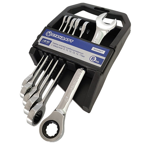 Стандарт Набір комбінованих ключів трещоточных 8-17мм 6ед. СТАНДАРТ NGW6ST (NGW6ST)