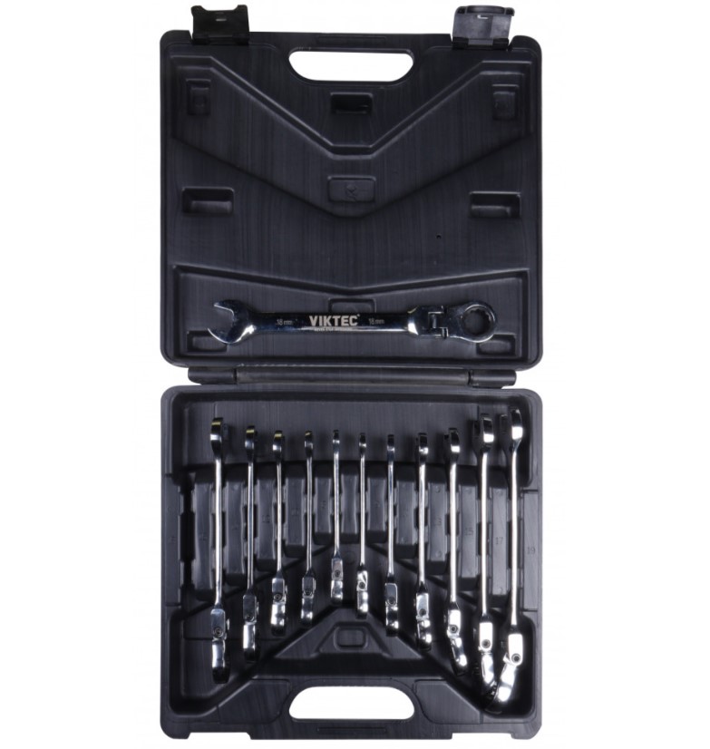 Viktec Набір ріжково-накидних ключів з тріскачкою шарнірних 8-19мм 12од. (VT14125)