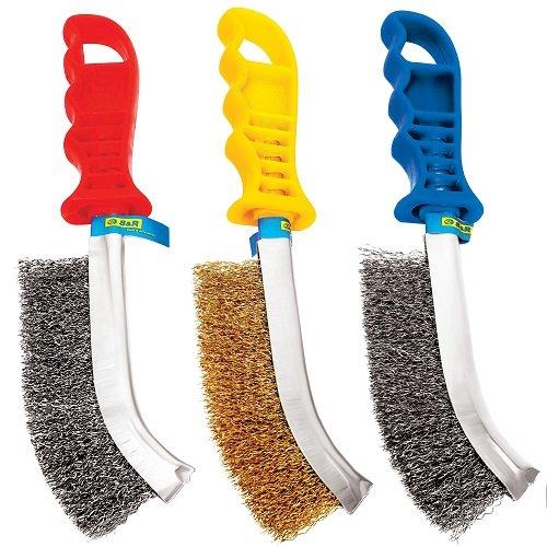 Набір ручних щіток S&R 3 шт. (метал, нерж., латунь) — призначений для підготовки поверхні до зварювання, фарбування, а також для видалення пилу, для шліфування, обробки металевих поверхонь (кольорові та чорні метали), дерев'яних поверхонь.