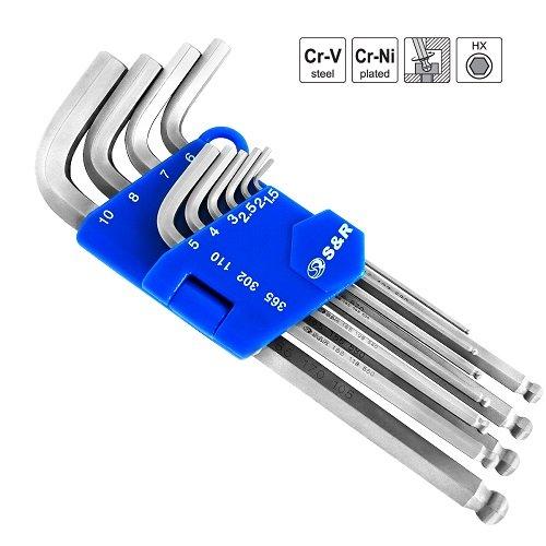 Набір шестигранних ключів S&R зі сферичними головками призначений для широкої сфери використання.