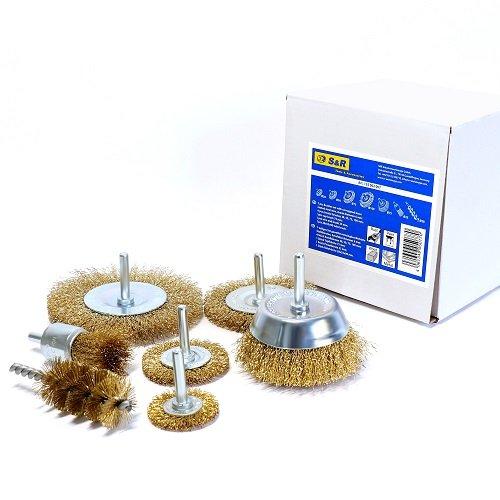 Набір щіток S&R для дриля 7 шт 6мм — призначений для підготовки поверхні до зварювання, до фарбування, а також для видалення пилу, зняття лакофарбових покриттів, видалення корозії, для шліфування.