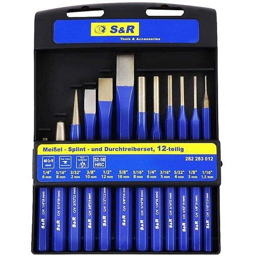 S&R 12предметів – набір виколоток та невеликих зубил для роботи з металом та іншими матеріалами для довбання, виштовхування, проколювання, видалення та ін.