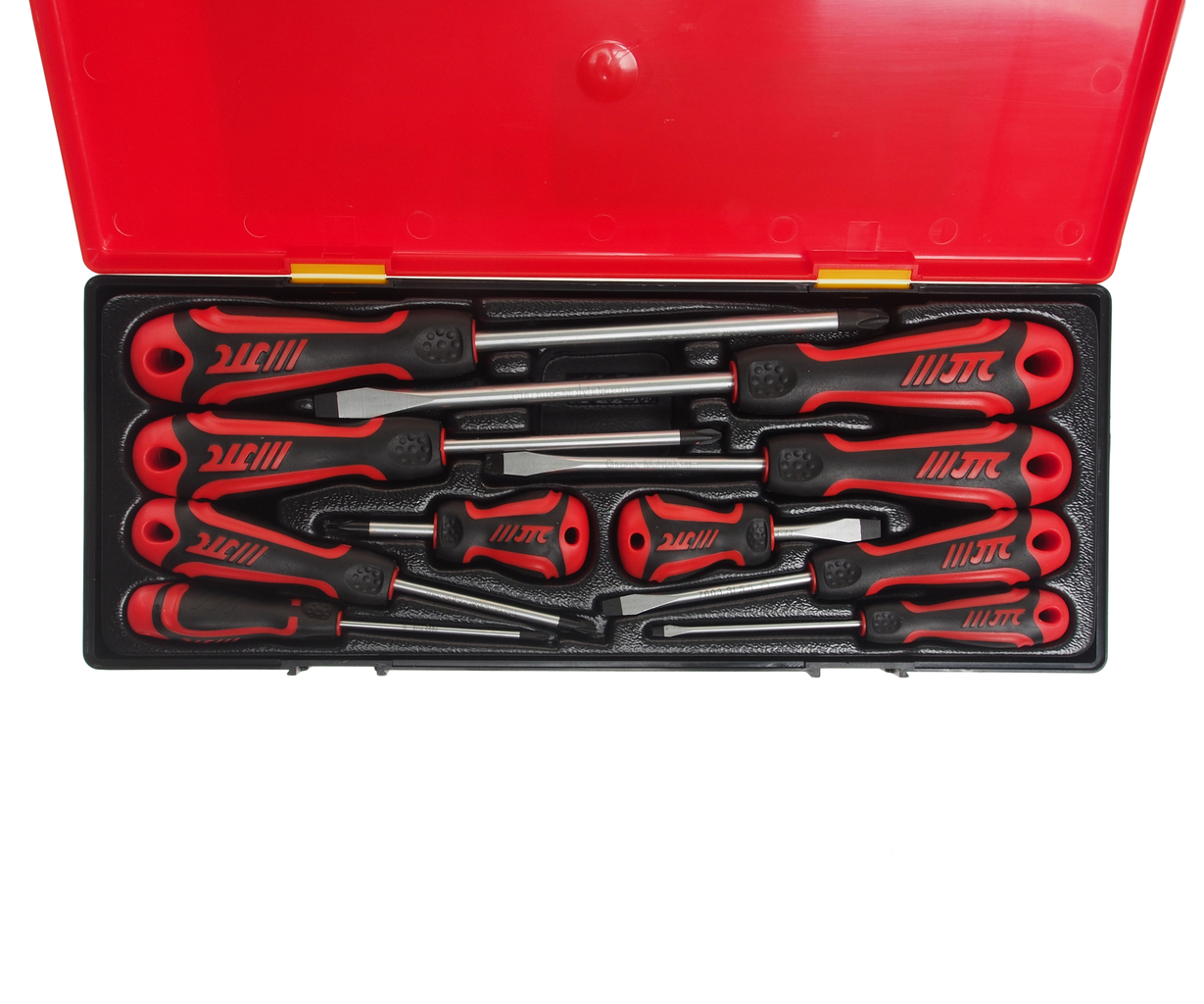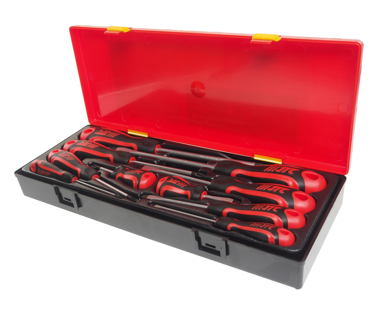 Набір викруток, У комплекті: SL: 3x75 мм., 5.5x75 мм., 6.5x38 мм., 6.5x100 мм., 8x150 мм. PH: 0x75 мм., 1x75 мм., 2x38 мм., 2x100 мм., 3x150 мм. - 10 шт. Загальна кількість предметів: 10 шт. Комплект упакований у міцний презентабельний бокс. Матеріал ручки: нейлон + суміш етилену із поліпропіленом (PP+TPV). Матеріал стрижня:сталь;SNCM8660.