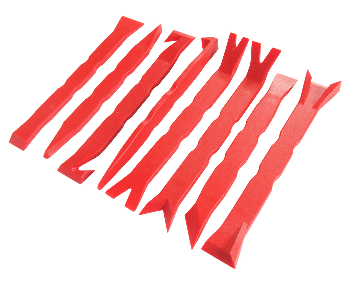 : Зйомники 8 типів Детальніше Унікальна форма інструментів дозволяє легко демонтувати різні кліпси, панелі та інші пластикові елементи панелі приладів не пошкоджуючи поверхню. Матеріал: склонейлон.