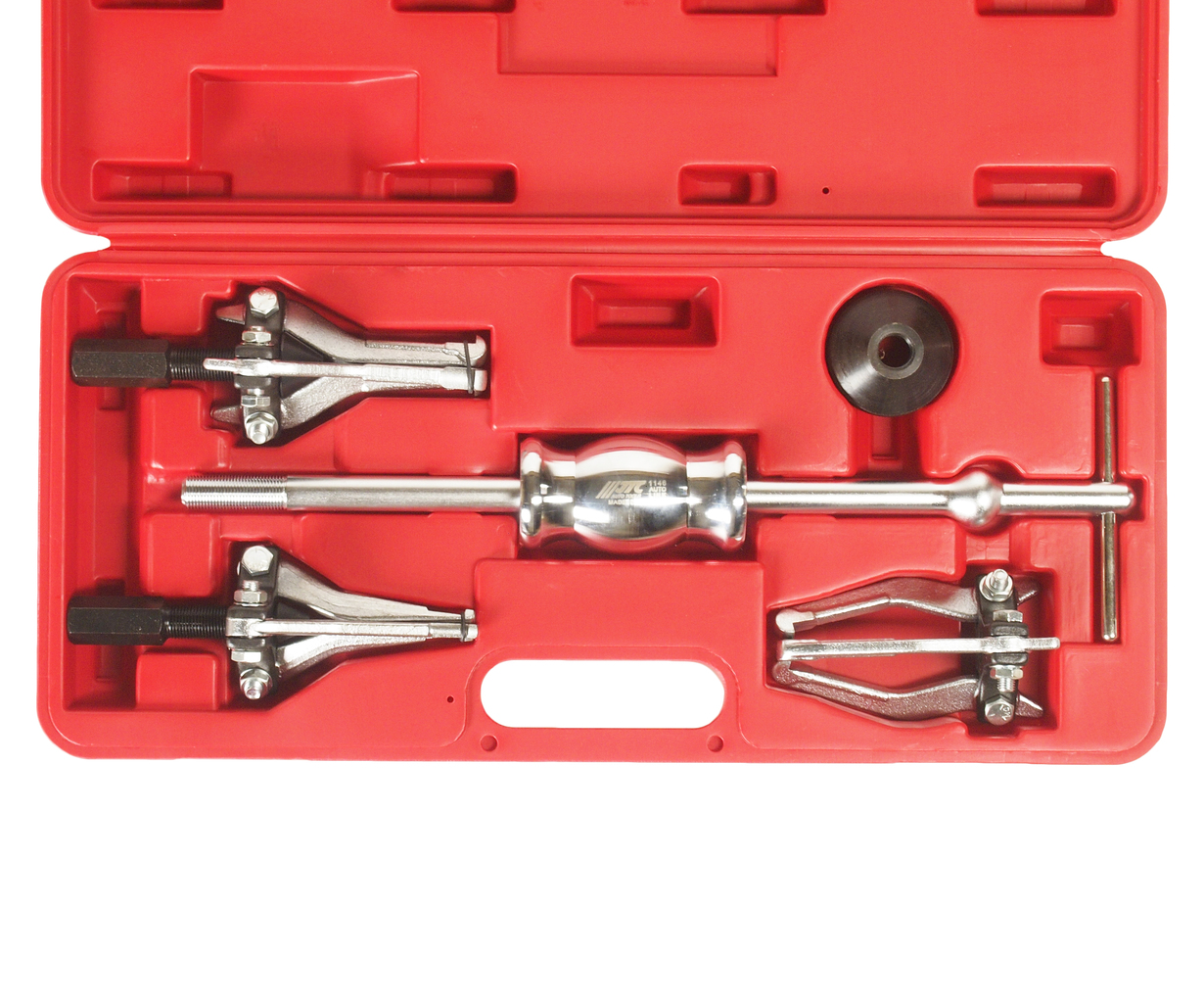 Знімач підшипників внутрішніх і зовнішніх;15~80мм інерційний;1146 JTC для ремонту підшипників. Комплектація Внутрішній знімач для малих розмірів – 1 шт. Внутрішній знімач для великих розмірів – 1 шт. Зовнішній знімач – 1 шт. Зворотний молоток – 1 шт. Фіксуюча гайка – 1 шт. ; Призначені для демонтажу внутрішніх та зовнішніх підшипників. Використовується із зворотним молотком. ; Технічні характеристики Внутрішній знімач для малих діаметрів: 15-30 мм; Внутрішній знімач для великих діаметрів: 30-80 мм; Зовнішній знімач: 15-80 мм. Молоток, діаметр: 53 ммдовжина: 100 мм. Стрижень молотка, довжина: 425 мм.