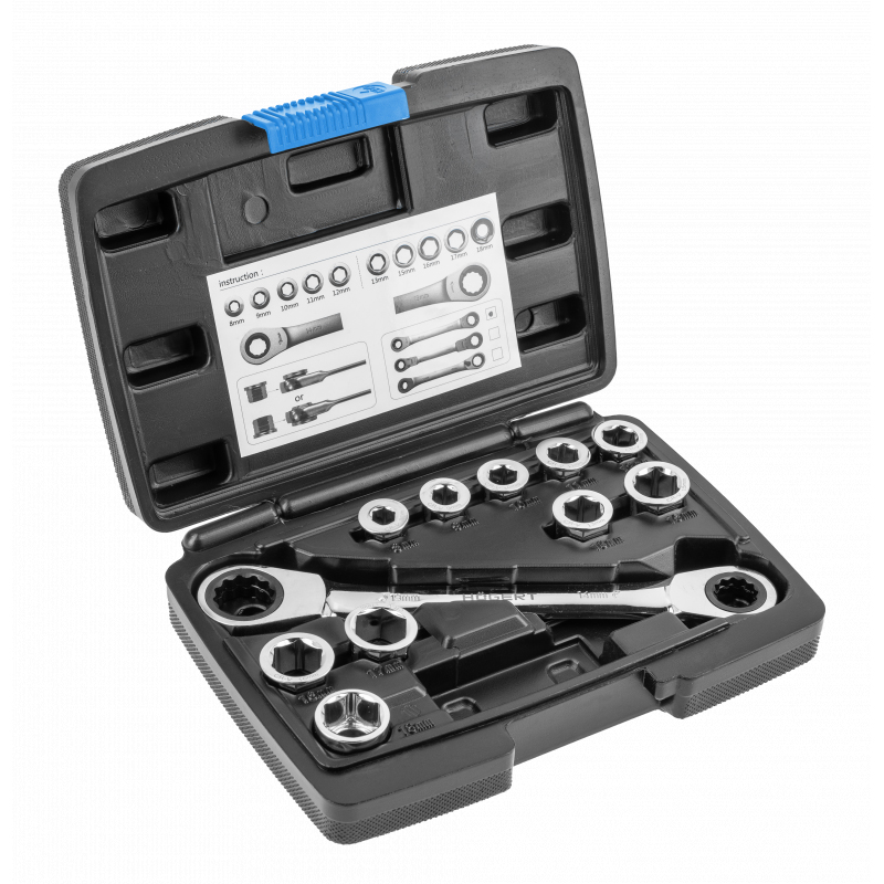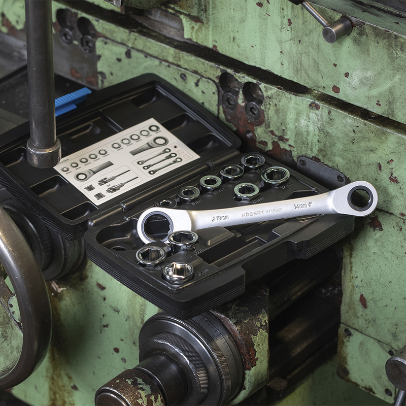 HOEGERT Накидний ключ з тріскачкою та насадками HOEGERT 8 - 19 (HT1R490)