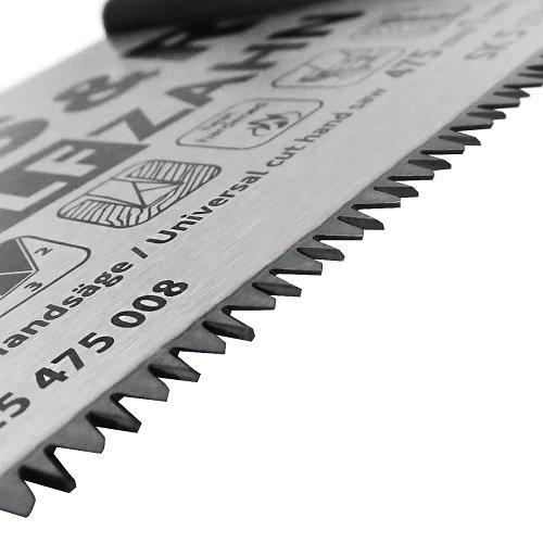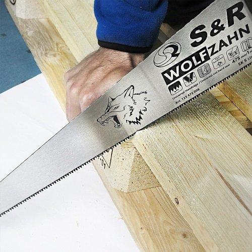S&R 475 мм/8 зубів – ножівка для розпилу дерев'яного матеріалу, заготовок із МДФ, ДСП, фанери та пластику. Полотно виготовлене з високоякісної сталі SK5, що надає пилі міцності для роботи з матеріалами різної жорсткості. Потрійне заточування та термозагартування дозволяє зубцям довго залишатися гострими і швидко виконувати поставлене завдання.