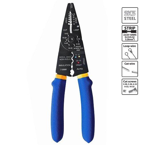 Інструмент для зняття ізоляції - різання - обтискання терміналів S&R 205 мм - багатофункціональний ручний інструмент для роботи з кабелем 10-22 AWG (0,5-6 мм2), дротом, клемами.