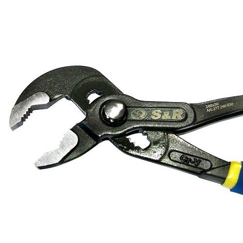 S&R 240х30 мм – переставні кліщі з рамковим механізмом та кнопкою фіксації. Призначені для міцного захоплення деталей, водопровідних та газових труб при виконанні ремонтних, будівельних та сантехнічних робіт.