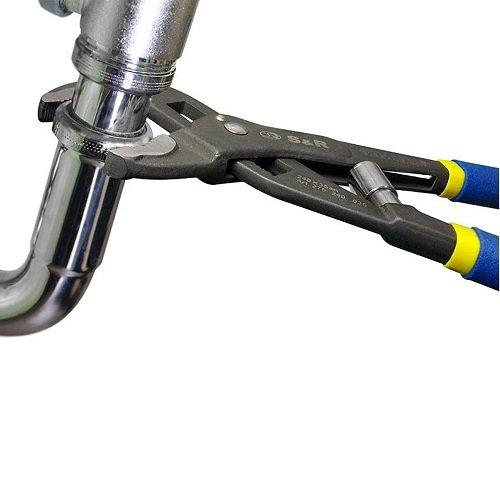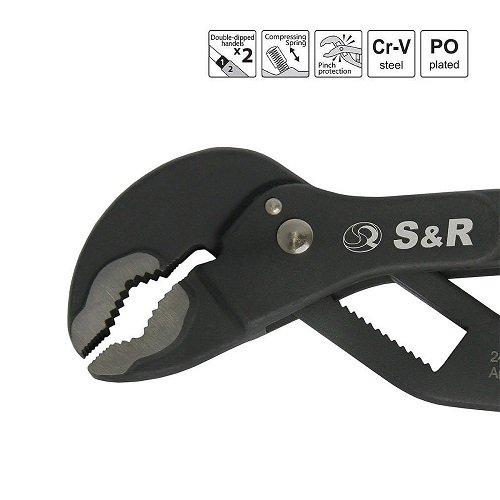 S&R 240х35 мм – переставні рамкові кліщі з пружинним механізмом. Призначені для міцного захоплення деталей, кріпильних елементів, труб при виконанні ремонтних, будівельних та сантехнічних робіт.