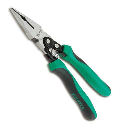 На сьогодні у світі розроблено новаторами і інструментальними заводами вироблено велику кількість всіляких тех. засобів діагностики і спец. ремонту колісного автотранспорту. Відноситься до типу шарнірно - губцевым інструментів, плоскогубці можна відшукати в будь-якому будинку та придбати в будь-якому будівельному магазині. Напевно кожен другий чоловік, хоча б раз за все життя користувався таким універсальним інструментом. Існує кілька видів плоскогубців, наприклад, плоскогубці подовжені. Вони використовуються при ремонті різноманітної техніки та обладнання, а також для електромонтажних робіт як утримуючий інструмент. | Плоскогубці подовжені - це кліщі, губки яких пірамідальної, подовженої форми з нанесеною на внутрішні плоскі поверхні насічкою, що сприяють зручній роботі з деталями розташованими у важкодоступних місцях. З допомогою шарніра високої точності рухається робоча частина інструмента, що дозволяє забезпечити плавну роботу. Плоскогубці подовжені використовуються для захоплення дрібних деталей і здійснення з ними різних маніпуляцій (загинання, скручування, перекушування проводів і дроту). Також плоскогубці оснащені ізолюючими зручними рукоятками з м'якими накладками для зручного захоплення. | Якість інструменту майже завжди залежить від міцного матеріалу з якого він виготовляється. У виготовленні інструменту виробництва заводу TOPTUL застосовує безліч новітніх спец. технологій обробки. У технології виробництва даного інструменту використовується високоякісна хроммолібденовая сталь індукційної загартування, для кращої якості і надійності. Інструменти TOPTUL відрізняються високою якістю, надійністю і широким терміном служби, а на деякі групи інструменту навіть поширюється довічна гарантія. Купити плоскогубці подовжені - це значить, зробити вірний вибір на користь довговічності, надійності, якості та ергономічної функціональності.