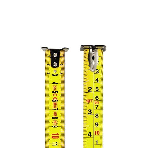 Розмітка на вимірювальній стрічці нанесена з обох боків для зручного використання в різних умовах. Вимірювальна стрічка з якісним захисним покриттям, яке захищає позначки на стрічці від стирання, а також зміцнює стрічку, не дозволяючи гнутися. Якісний механізм для скручування забезпечує довгу роботу інструменту. Зручний фіксатор дозволяє зафіксувати стрічку в будь-якому положенні.