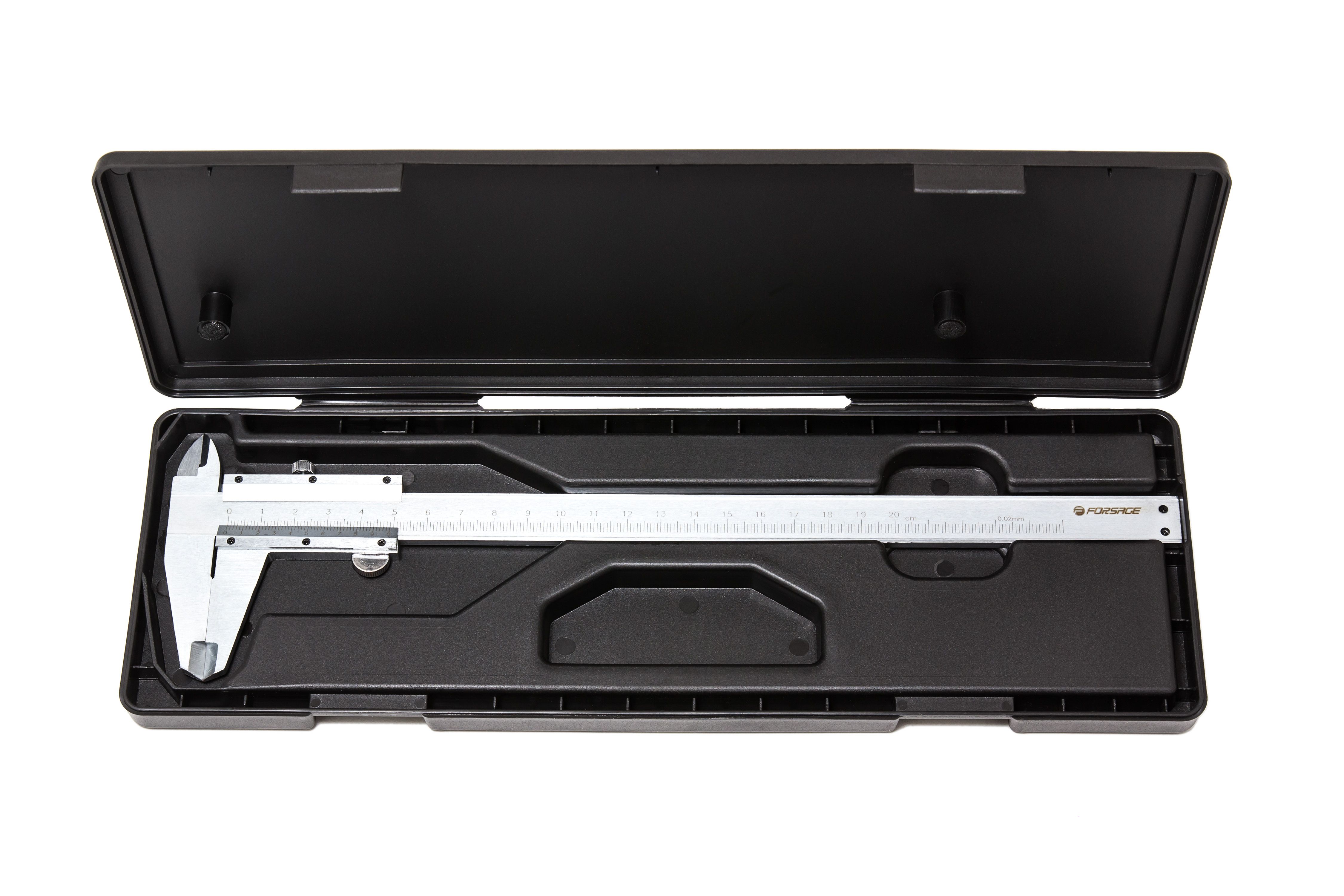 Склад: Штангенциркуль (0-200мм, 0.02мм; внутр. Ø, наруж. Ø + глибиномір), у пластиковому футлярі Forsage F-5096P2