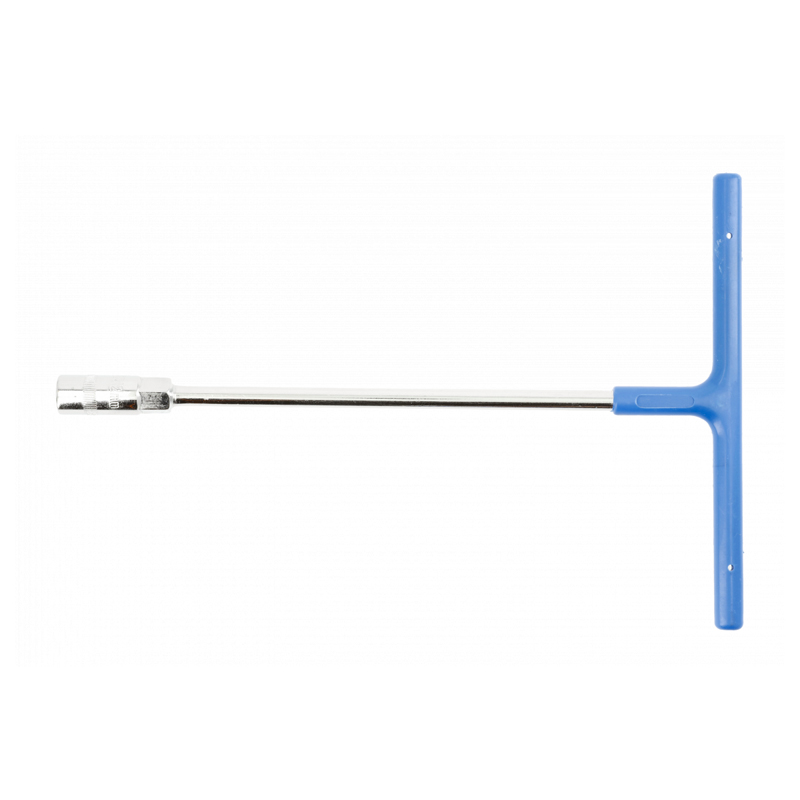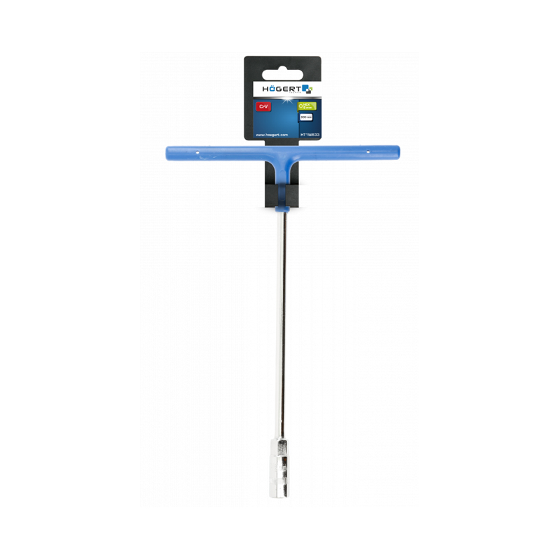Торцевий Т-подібний ключ забезпечує доступ до важкодоступних і глибоко розташованих болтів та гайок. Він виготовлений із міцної та стійкої до пошкоджень CrV-сталі із хромовим покриттям для захисту інструменту від іржі. Рукоятка має гумове покриття для запобігання ковзанню руки та надійнішому захопленню інструменту.