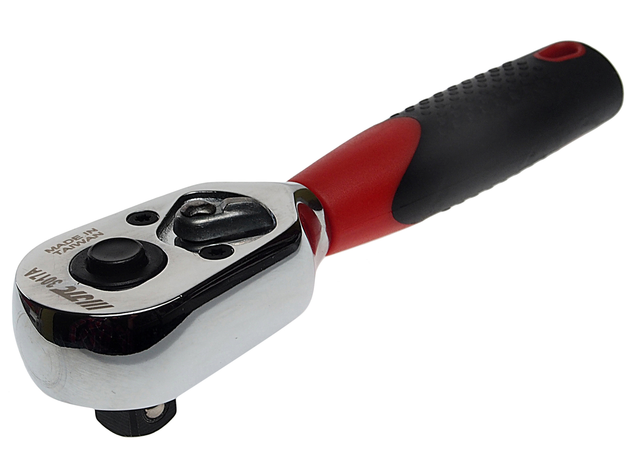 Тріскачка з гумовою;рукояткою. Забезпечує зручну роботу в обмеженому просторі. Посадковий квадрат: 3/8; Довжина: 120 мм. Кількість зубців: 45.
