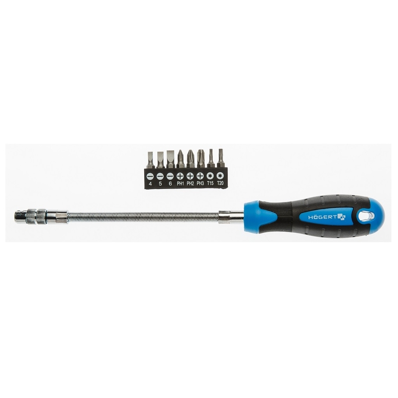 HOEGERT Викрутка з гнучким стрижнем і комплектом біт HOEGERT SL/PH/TORX (HT1S090)