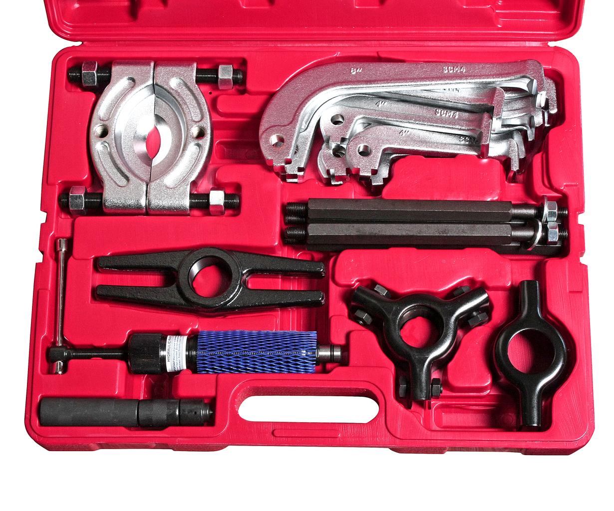 Комплектація 10-тонний гідравлічний циліндр діаметром 37.7 мм. – 160 мм.х16Т (дюйм) – 1 шт. Комплект лап: 4; -6; -8; по 3 шт. кожних. Подвійна головка1 шт. Потрійна головка1 шт. Виштовхувач 1-11/4; 1 шт. Подовжувальна штанга 1; -2; 1 шт. Подовжувальна штанга 1; -4; 1 шт. Подовжувальна штанга 8-1.75Р2 шт. Рукоятка1 шт. Сепаратор та болт (зусилля: 75мм-105мм болт 5/8-18Т)1 шт. Гайка1 шт. Окремий знімач для підшипників1 шт.