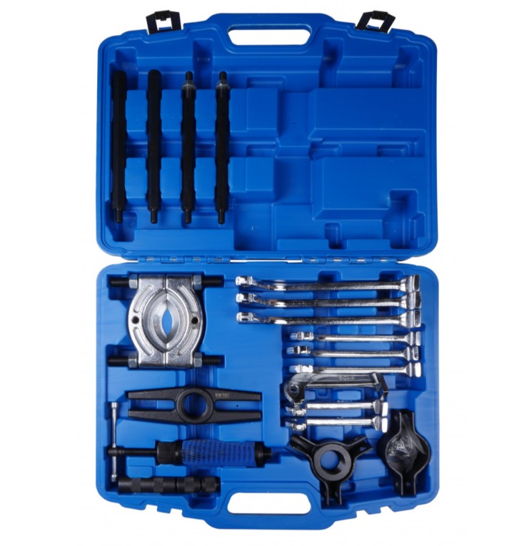 Комплектація: 10-тонний гідравлічний циліндр діаметром 37.7 мм. – 160 мм.х16Т (дюйм) – 1 шт. Комплект лап: 4; -6; -8; по 3 шт. кожних. Подвійна головка1 шт. Потрійна головка1 шт. Виштовхувач 1-11/4; 1 шт. Подовжувальна штанга 1; -2; 1 шт. Подовжувальна штанга 1; -4; 1 шт. Подовжувальна штанга 8-1.75Р2 шт. Рукоятка1 шт. Сепаратор та болт (діапазон: 75мм-105мм болт 5/8-18Т)1 шт. Гайка1 шт. Окремий знімач для підшипників1 шт.