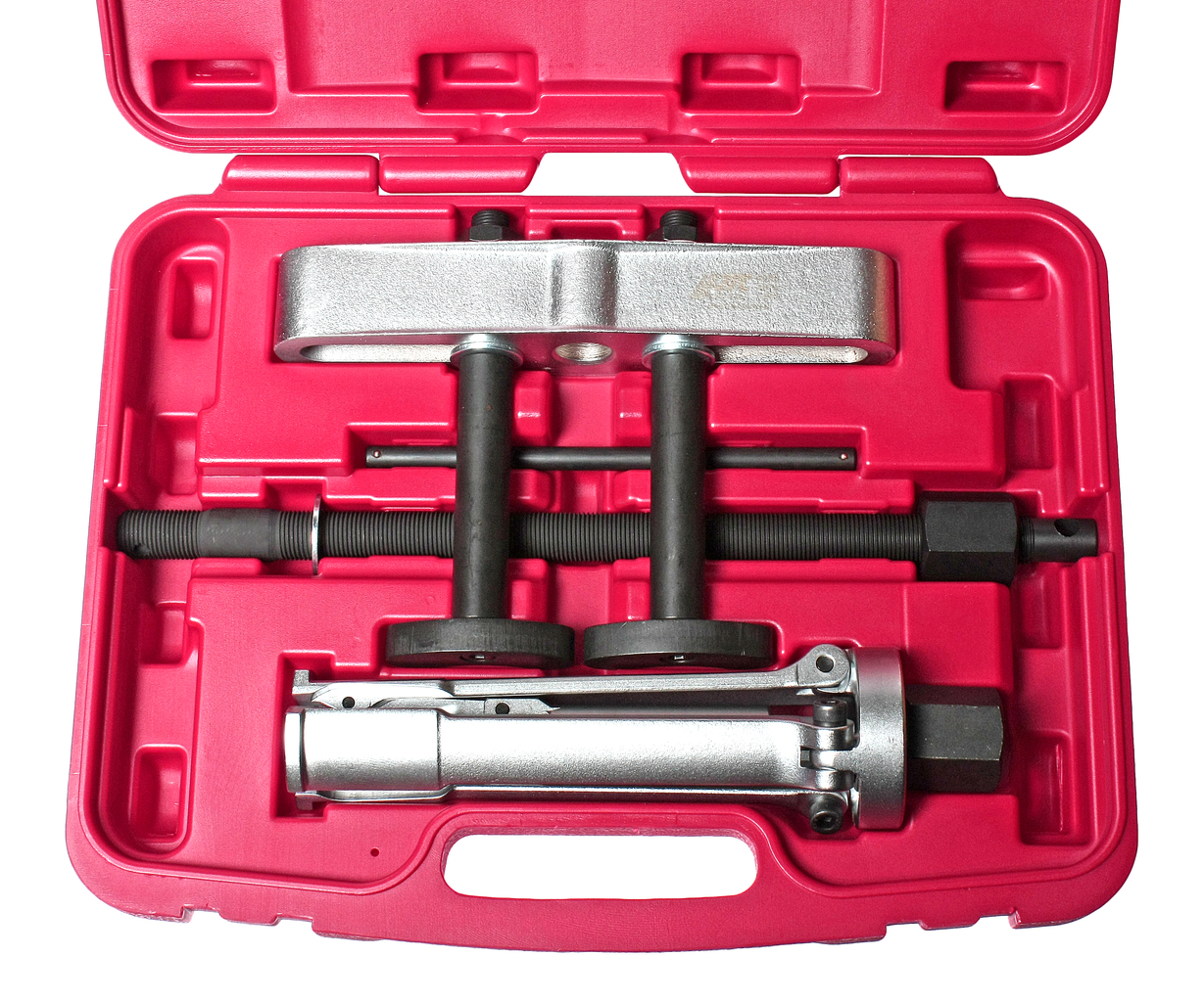 Комплектація Ходовий гвинт із різьбленням високої точності. Високоміцна траверса. Опорні лапки (2 шт.). Захоплення. ; Призначений для демонтажу зношених гільз блоків циліндрів дизельних двигунів легкових та вантажних транспортних засобів. ; Для зношених гільз блоку циліндрів вантажних автомобілів Mercedes-Benz, Man, а також автобусів і т.п. ; Технічні характеристики: Для діаметрів 60-160 мм. ; Порядок роботи Зберіть інструмент та встановіть його на ГБЦ (захопленнями за нижній торець гільз). Починайте прокручувати гвинт. Почнеться випресовування гільзи.