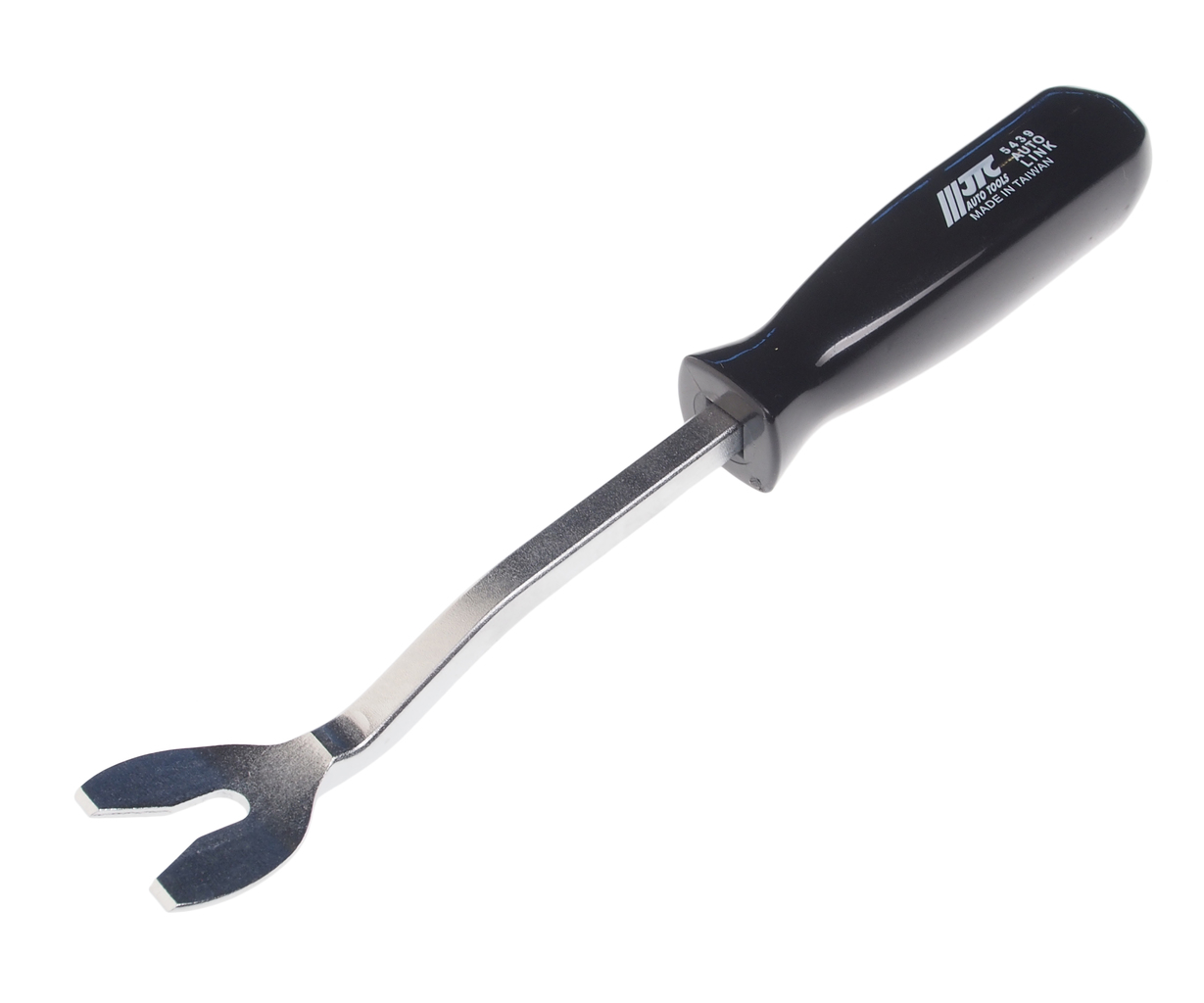 Інструмент призначений для розклинювання скоб внутрішньої дверної обшивки. Завести інструмент під край дверної панелі, вставити в кріплення, а потім підчепити. Матеріал: вуглецева сталь. Ручка зроблена із зносостійкого пластику. Ширина захвату: 7мм. Загальна довжина: 240мм.