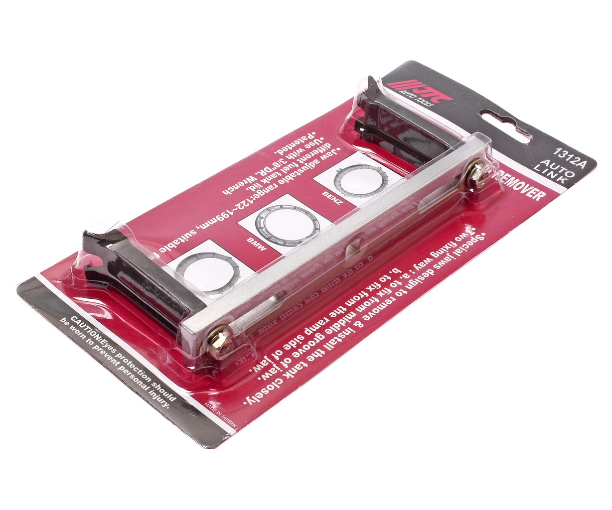 Запатентований. Застосовується для зняття та встановлення пластикової кришки паливного насоса. Широкий діапазон захватів (122-199 мм) дозволяє працювати з різними модифікаціями кришок. Дугоподібна конструкція забезпечує максимально щільний затиск кришки паливного насоса. Для більш точної фіксації кришки – спеціальні захвати можуть переміщатися вліво та вправо. Застосування: Універсальний. Технічні характеристики Квадрат приєднання 3/8;