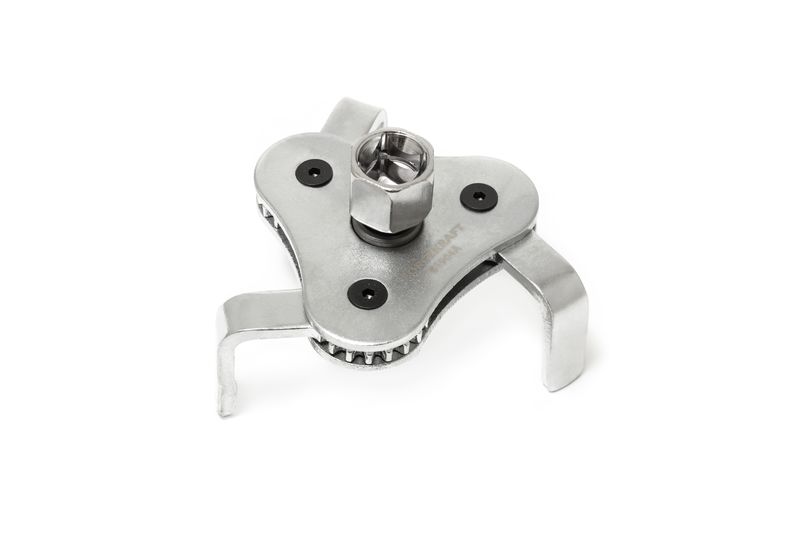 Саморегульований триважільний ключ для фільтрів FORCEKRAFT FK-61904A, який дозволяє знімати всі типи масляних фільтрів діаметром від 60 до 115 мм. Має варіанти регулювання шестигранної головки діаметром 1/2 дюйма, 3/8 дюйма та 21 мм для використання з широким спектром аксесуарів, включаючи силові стрижні, тріскачки та гайкові ключі. Ключ має широкі вигнуті губки із загартованої чорної сталі, що забезпечують надійне захоплення навіть на маслянистих поверхнях. Триважильний ключ для фільтрів, підходить для всіх фільтрів діаметром 60-115 мм. Для використання з тріскачкою, електроприводом чи продовжувачем. Також можна затягнути за допомогою торцевої головки або гайкового ключа на 21 мм.