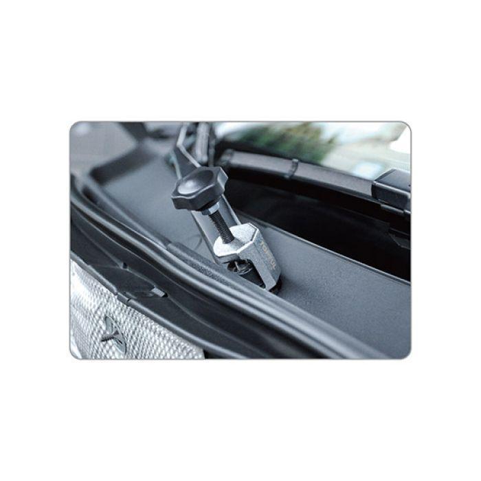 Знімач повідків склоочисників TOPTUL JFFA0116. Призначений для зняття важеля склоочисника. Прості гакові ніжки можуть легко проникати в обмеженому просторі. Ручка донастройкі для швидкої роботи.