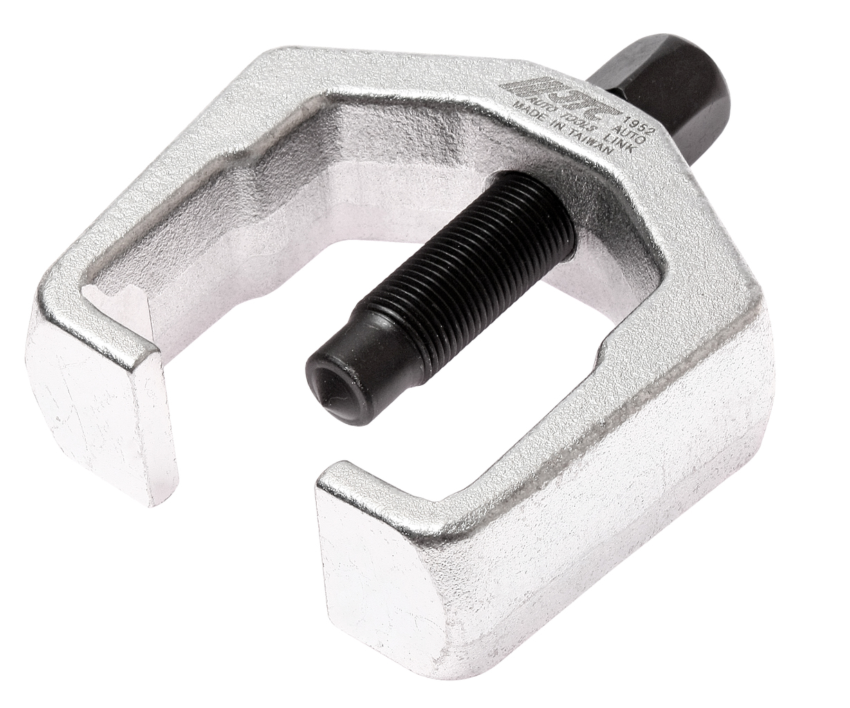 Комплектація Знімач - 1 шт. ; Призначений для зняття рульових шарнірів та сошок. Затискач виконаний із штампованої легованої сталі. Загартований центральний болт. ; Технічні характеристики Ширина зіва: 33 мм. Робоча хода: 64 мм. ; Застосування Застосовується більшість легкових автомобілів. ; Порядок роботи Підніміть та встановіть автомобіль на опори. Зніміть колесо, попередньо послабивши болти кріплення на землі. Відкрутіть гайку кріплення кермового шарніра. Встановіть знімач на кермовий шарнір. Провертаючи гайковим ключем гвинт зйомника, випресуйте рульовий шарнір.