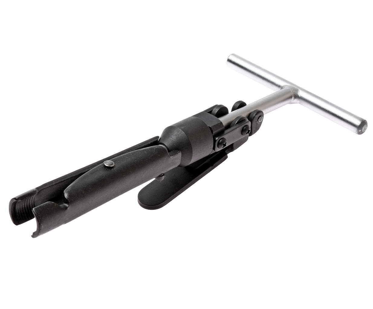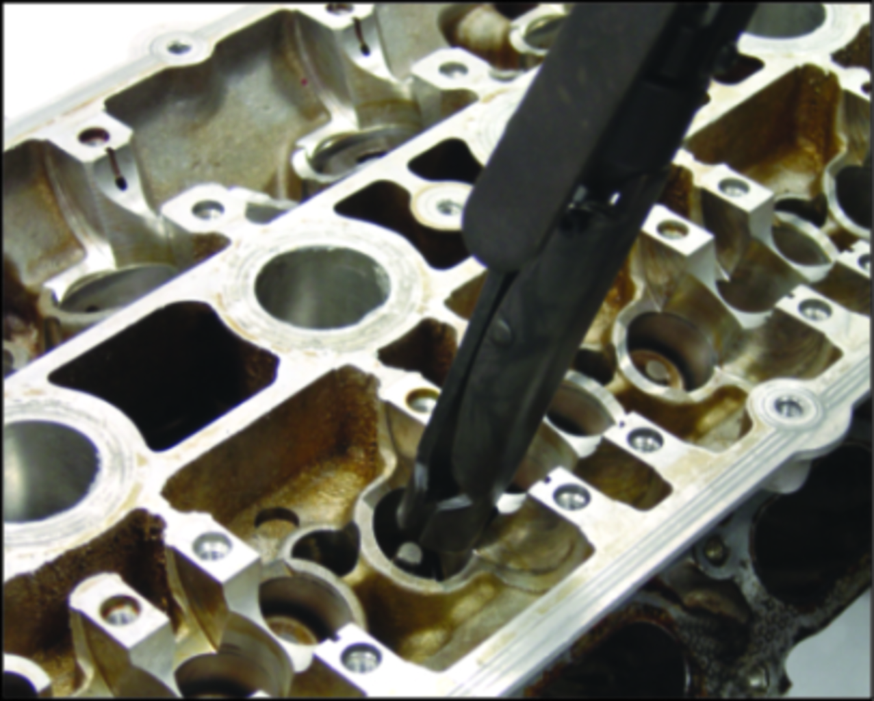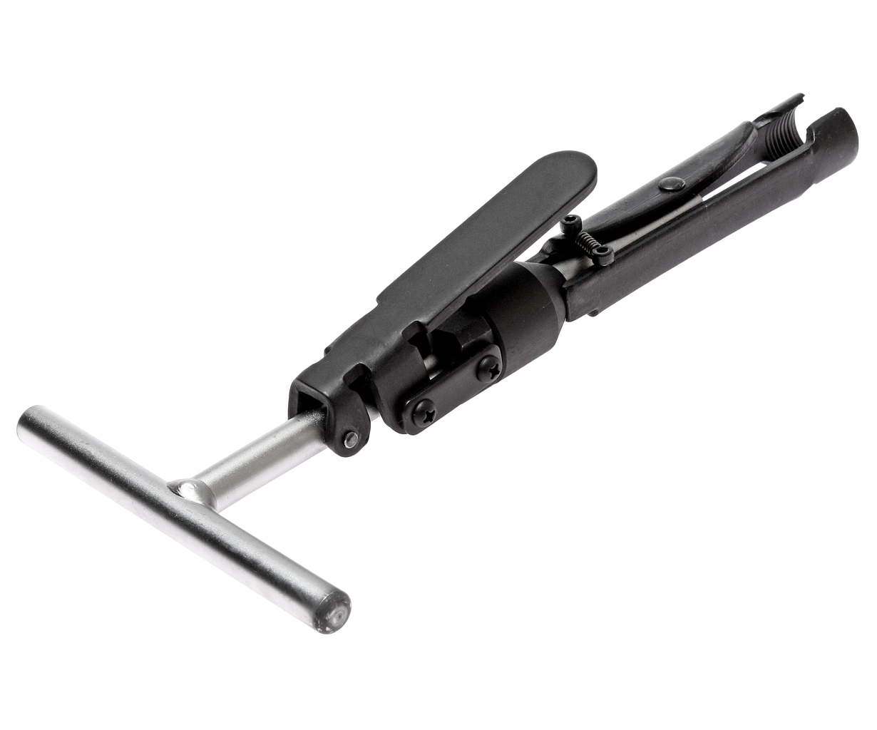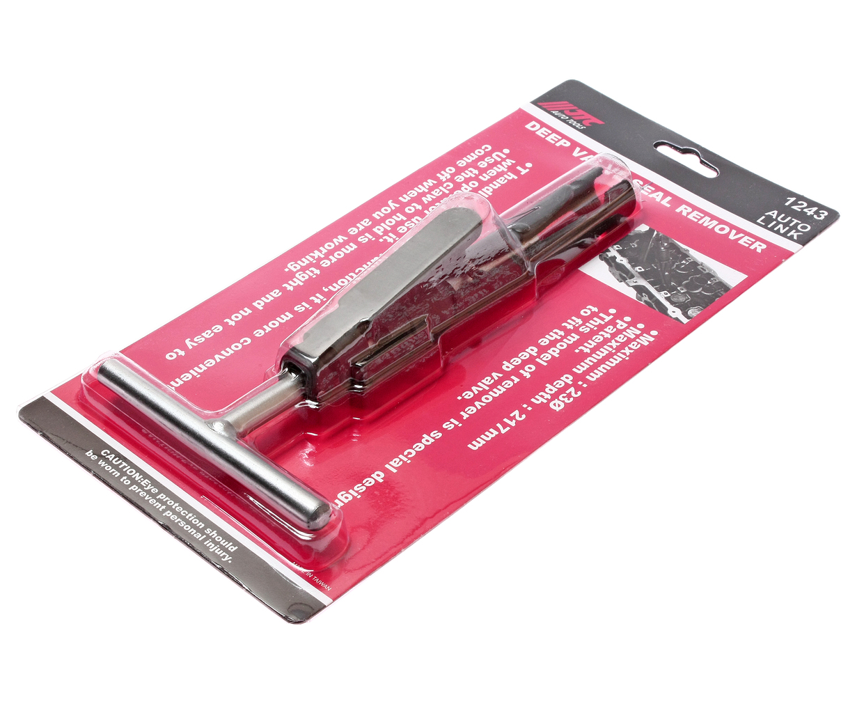 Запатентовано. Конструкція спеціально призначена для зняття сальників клапанів глибокої посадки, не ушкоджуючи їх. Знімач оснащений фіксатором робочої рукоятки, завдяки якому відбувається щільніше захоплення сальника. Акуратне подальше вилучення досягається за рахунок реалізації в Т-подібної конструкції принципу; Т-подібна ручка і фіксатор вигідно відрізняють цей інструмент від аналогів інших виробників, більш схожих на плоскогубці, застосування яких вимагає більше фізичних зусиль, крім того вони не можуть забезпечити щільного захоплення сальника і зручності роботи. Технічні характеристики Максимальна ширина захвату: 23 мм. Глибина: 217 мм. ;
