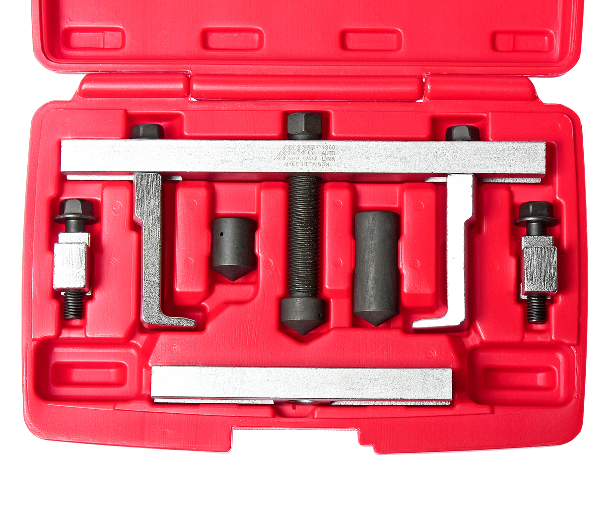 Комплектація Силовий гвинт із болтом. Втулки опорні для силового гвинта3 шт. Захоплення з гвинтами – 4 шт. Опорна планка2 шт. Підходить для використання в обмеженому просторі. Конструкція передбачає легку заміну елементів знімачів (захоплень), що дозволяє використовувати пристосування для різних марок автомобілів. Технічні характеристики Довжина губок: 72/95 мм. Глибина захвату: 18 мм, ширина: 4,4 мм. ;