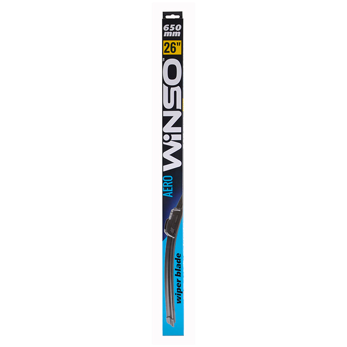 Двірники AERO WINSO безкаркасні 650мм. 110650.Winso AERO - безкаркасні склоочисники для автомобілів зі стандартним типом кріплення. Досконале будова склоочисників Winso AERO забезпечує рівномірне прилягання до вітрового стекла незалежно від його форми. Гумова лезо склоочисників Winso AERO виготовлено з високоякісного каучуку з графітовим покриттям, що забезпечує ідеальне витирання без лишнього шуму та експлуатацію протягом тривалої години.Склоочисники Winso AERO виготовлені з високоякісної сировини та комплектуючих, зберігаючи високі стандарти якості. Стійкі до негативного впливу зовнішньої середовища, зберігають свої властивості за будь-яких погодних умов.
