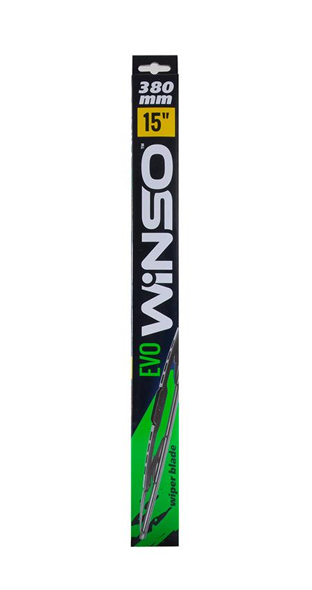 Двірники EVO WINSO 380мм. Каркасні двірники для очищення лобового скла автомобіля.Переваги:каркас такої моделей повністю металічний, що робить практично неможливим фізичне руйнування дворникарезинка щіток знімна, адже іноді достатньо проводити часткову заміну деталейкаркасні двірники краще притискаються по краях на автомобілях із сильно закругленими склом