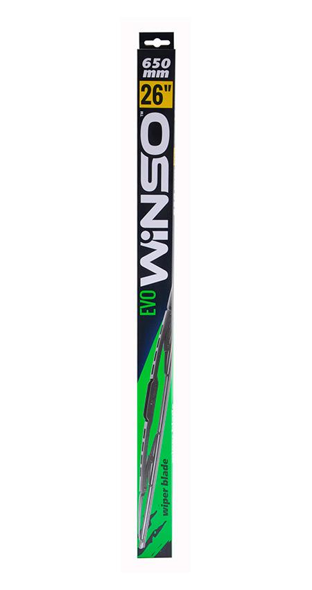 Двірники EVO WINSO 650 мм. Каркасні двірники для очищення чолового скла автомобіля.Переваги:каркас такої моделей повністю металевий, що унеможливлює фізичне руйнування двірникагумка щіток знімна, адже іноді досить виробляти часткову заміну деталейкаркасні двірники краще притискаються по краях на автомобілях із сильно заокругленими склами