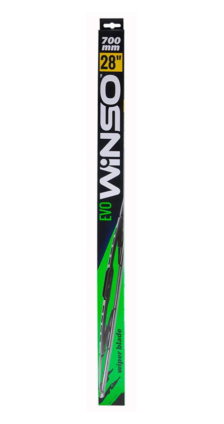 Двірники EVO WINSO 700мм. Каркасні двірники для очищення лобового скла автомобіля.Переваги:каркас такої моделей повністю металічний, що робить практично неможливим фізичне руйнування дворникарезинка щіток знімна, адже іноді достатньо проводити часткову заміну деталейкаркасні двірники краще притискаються по краях на автомобілях із сильно закругленими склом