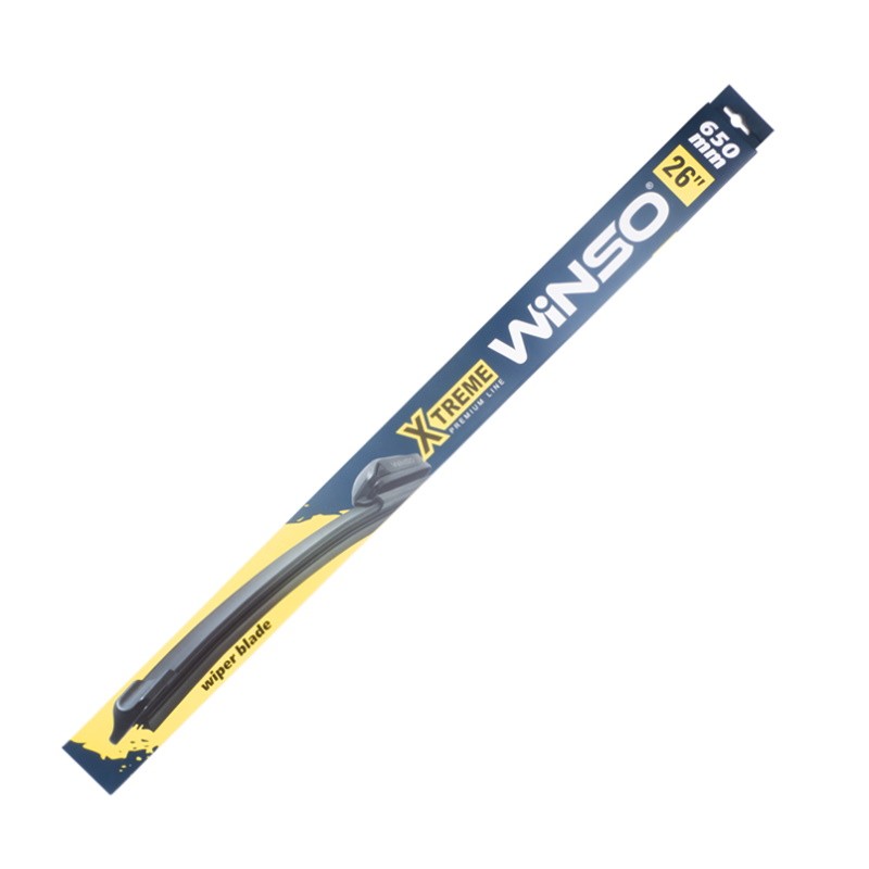 Дворники Winso X Treme безкаркасні 650мм. Winso Xtreme-це безкаркасні склоочисники преміум-класу з усіма типами адаптерів в комплекті, які підходять для 99% автомобілів. Конструкція безкаркасних склоочисників XTREME забезпечує рівномірне прилягання їх до вітрового скла незалежно від його форми. Аеродинамічний спойлер забезпечує високу ефективність очищення на великій швидкості.Гумове лезо склоочисників Winso Xtreme виготовлені з багатокомпонентних елементів високої якості з додаванням натурального каучуку. Графітове покриття сприяє безшумній роботі і експлуатації протягом тривалого часу.Склоочисники Winso XTREME виготовлені з дотриманням високих стандартів якості. Стійкі до негативного впливу зовнішнього середовища, зберігають свої властивості при будь-яких погодних умовах.