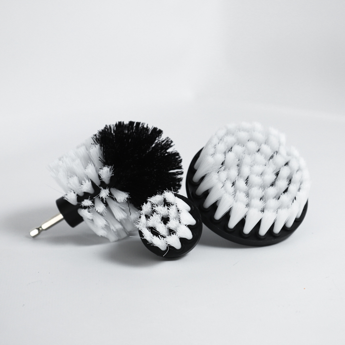 Використовуються з будь-яким дрилем або шуруповертом. Набір можна використовувати вдома, в майстерні, гаражі. Головки адаптовані для чищення різних поверхонь: цемент, покриття для підлоги, плитка, стики, лінолеум, сантехнік, раковини, плити, стільниці, килими, колісні диски, багажники. Також підходять для використання в різних місцях, таких як ванна кімната, кухня та ін. Головки різної форми дозволяють працювати на різних поверхнях і дотягуватись навіть до важкодоступних місць. Їх можна використовувати вологими та сухими. Є твердий і м'який ворс. Матеріал щіток: нейлон. Хвостовики: шестигранні. Розміри: 1) 10.3 x 8.3 см 2) 10 x 4.6 см (12.5 × 4.6 см) 3) 5 x 4.8 см