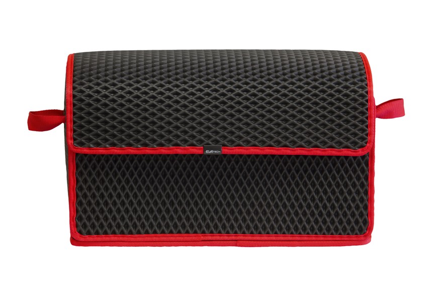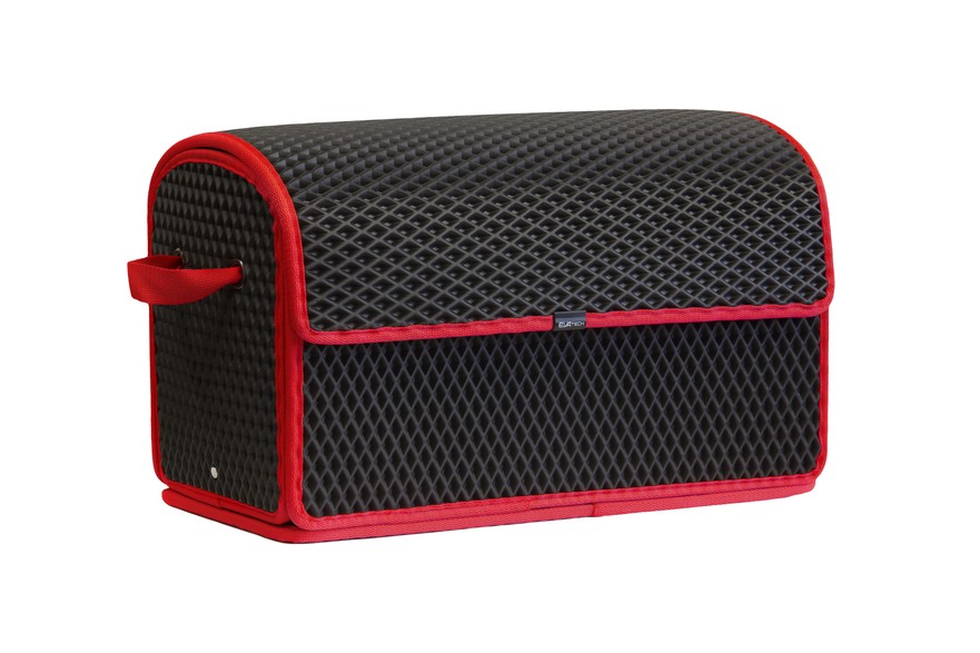 Сумка-органайзер від EVAtech у багажник авто, чорний ромб із червоним кантом. Сумка легка та зручна. Закривається липучками. Органайзер від EVAtech з відмінними характеристиками міцності: витримують перепади температур від +50 до -50 градусів, не вступають у взаємодію з різними хімічними реагентами та стійкі до механічного впливу. Виробник: EVAtech. Сумісність з усіма авто.
