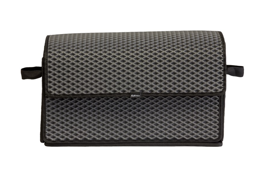 Сумка-органайзер від EVAtech у багажник авто, сірий ромб із чорним кантом. Сумка легка та зручна. Закривається липучками. Органайзер від EVAtech з відмінними характеристиками міцності: витримують перепади температур від +50 до -50 градусів, не вступають у взаємодію з різними хімічними реагентами та стійкі до механічного впливу. Виробник: EVAtech. Сумісність з усіма авто.