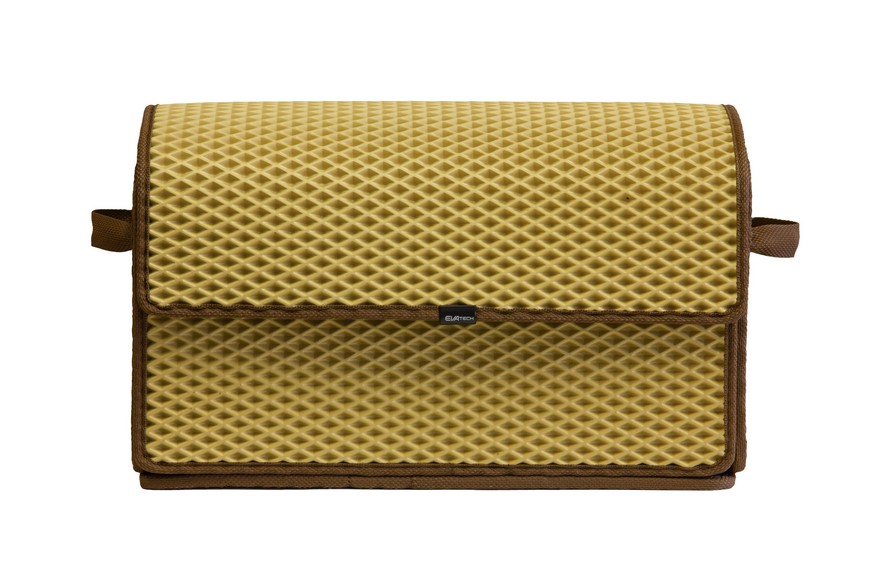 Сумка-органайзер від EVAtech у багажник авто, бежевий ромб із коричневим кантом. Сумка легка та зручна. Закривається липучками. Органайзер від EVAtech з відмінними характеристиками міцності: витримують перепади температур від +50 до -50 градусів, не вступають у взаємодію з різними хімічними реагентами та стійкі до механічного впливу. Виробник: EVAtech. Сумісність з усіма авто.