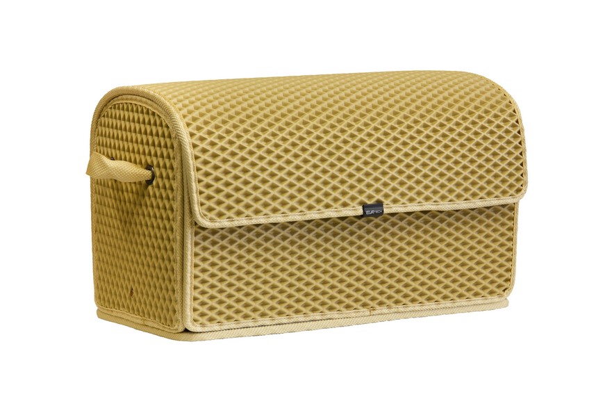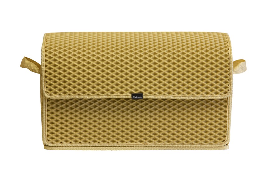 Сумка-органайзер від EVAtech у багажник авто, бежевий ромб із бежевим кантом. Сумка легка та зручна. Закривається липучками. Органайзер від EVAtech з відмінними характеристиками міцності: витримують перепади температур від +50 до -50 градусів, не вступають у взаємодію з різними хімічними реагентами та стійкі до механічного впливу. Виробник: EVAtech. Сумісність з усіма авто.