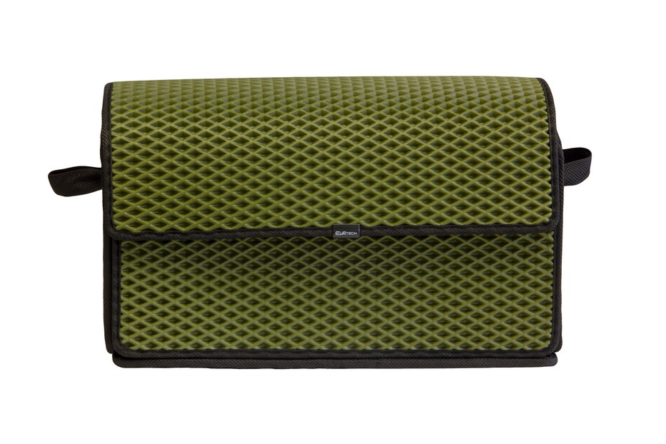 Сумка-органайзер від EVAtech у багажник авто, хакі ромб із чорним кантом. Сумка легка та зручна. Закривається липучками. Органайзер від EVAtech з відмінними характеристиками міцності: витримують перепади температур від +50 до -50 градусів, не вступають у взаємодію з різними хімічними реагентами та стійкі до механічного впливу. Виробник: EVAtech. Сумісність з усіма авто.