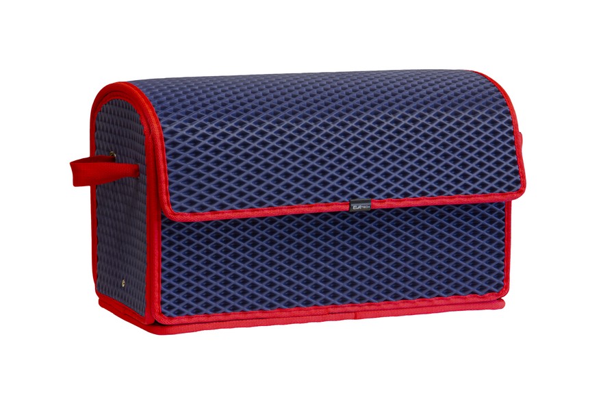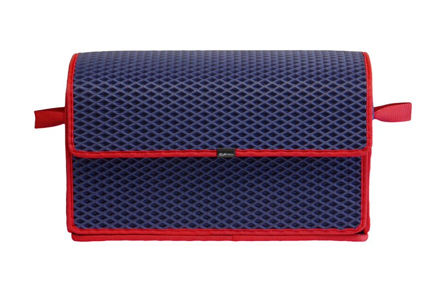 Сумка-органайзер від EVAtech у багажник авто, синій ромб із червоним кантом. Сумка легка та зручна. Закривається липучками. Органайзер від EVAtech з відмінними характеристиками міцності: витримують перепади температур від +50 до -50 градусів, не вступають у взаємодію з різними хімічними реагентами та стійкі до механічного впливу. Виробник: EVAtech. Сумісність з усіма авто.