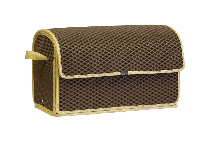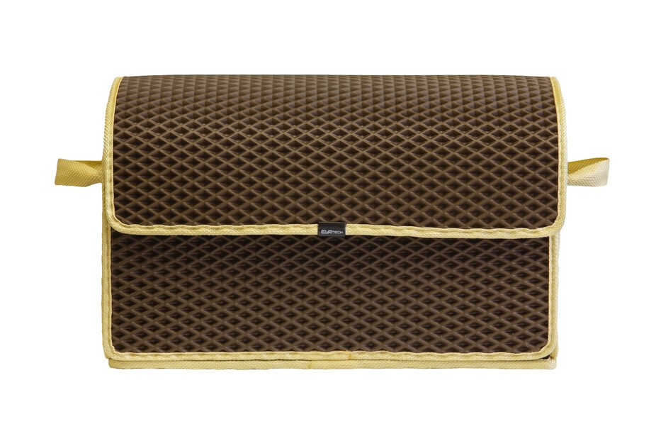 Сумка-органайзер від EVAtech у багажник авто, коричневий ромб із бежевим кантом. Сумка легка та зручна. Закривається липучками. Органайзер від EVAtech з відмінними характеристиками міцності: витримують перепади температур від +50 до -50 градусів, не вступають у взаємодію з різними хімічними реагентами та стійкі до механічного впливу. Виробник: EVAtech. Сумісність з усіма авто.