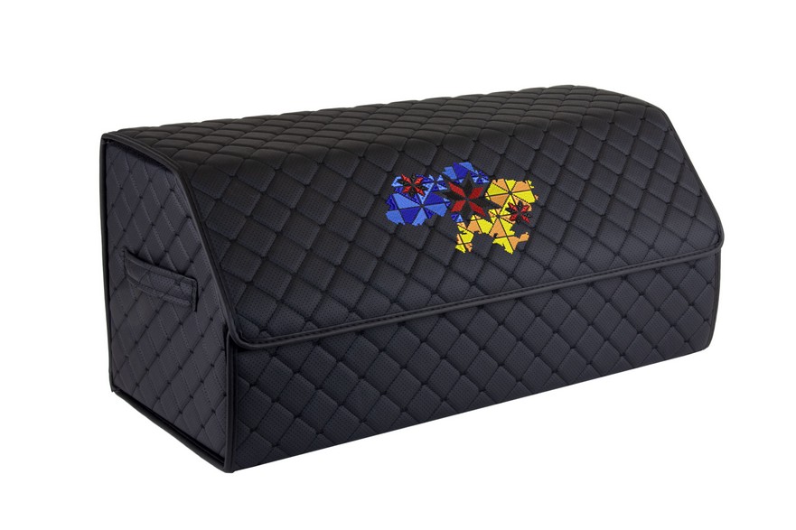 Сумка-органайзер в багажник EVAtech ECO L 30x30x65 см Карта України чорна з чорною ниткою EHECELBBBBV101